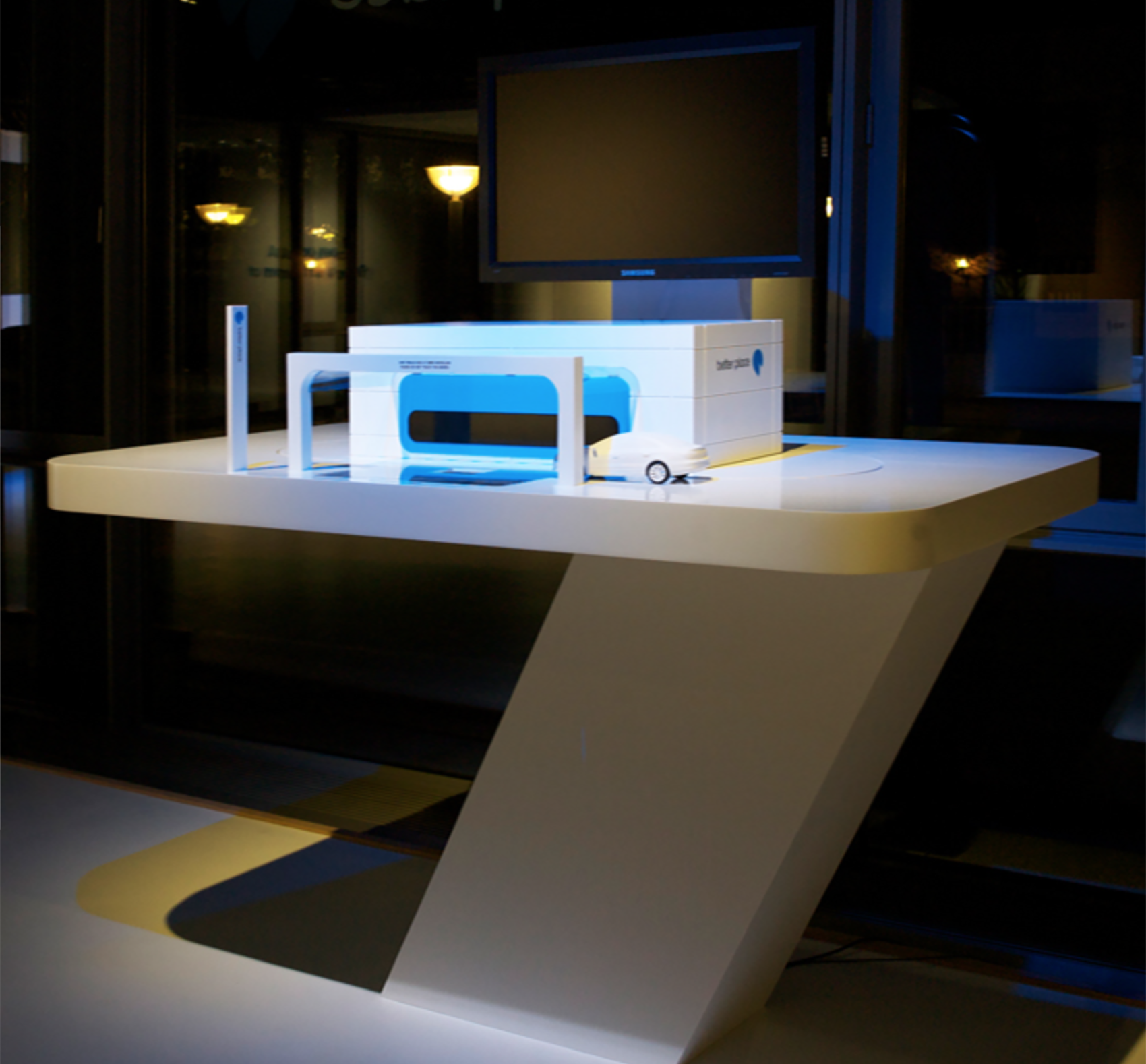 The installation uses innovative technology and lighting to illustrate the captivating phenomenon of transforming electricity from renewable sources into transportation. As a narrative element, interactive installations are used to unveil information related to energy, environment, economics and electric cars, all shaped in a relaxing and inspiring environment.