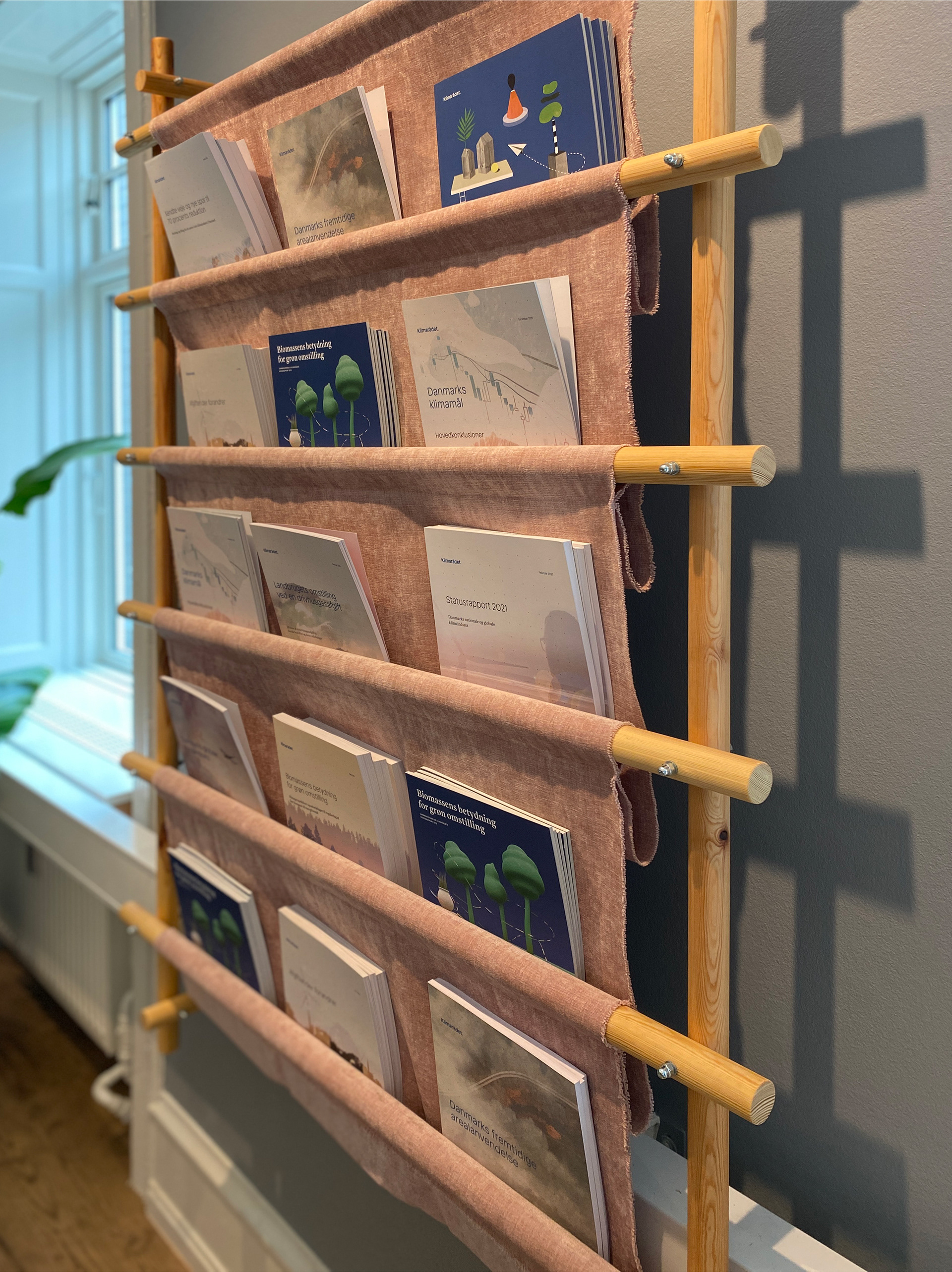 Pin-up boards are manufactured with sustainable fiberwood. The acoustic and graphic elements are made using the in-house infographics produced by the Klimarådet research team.