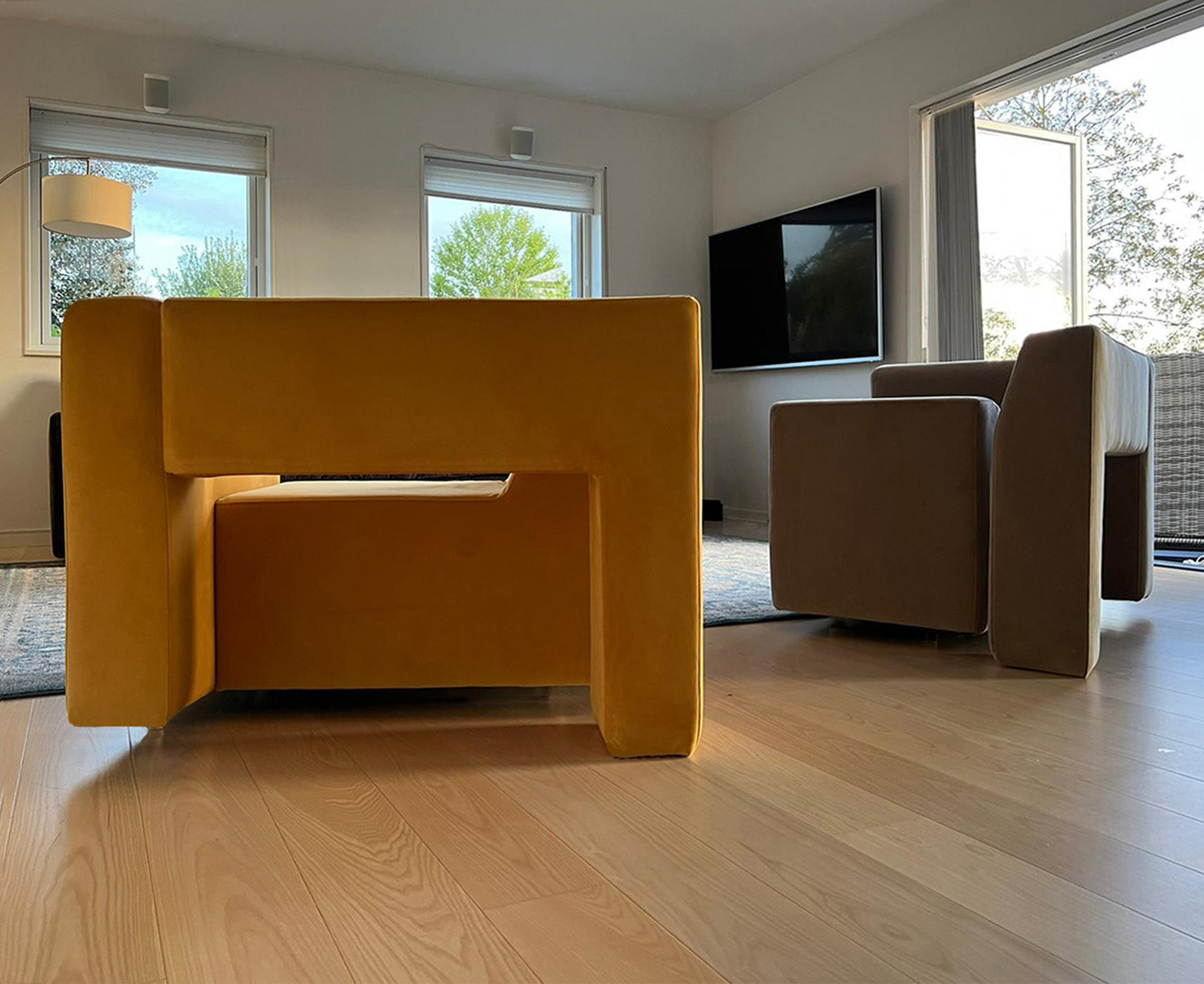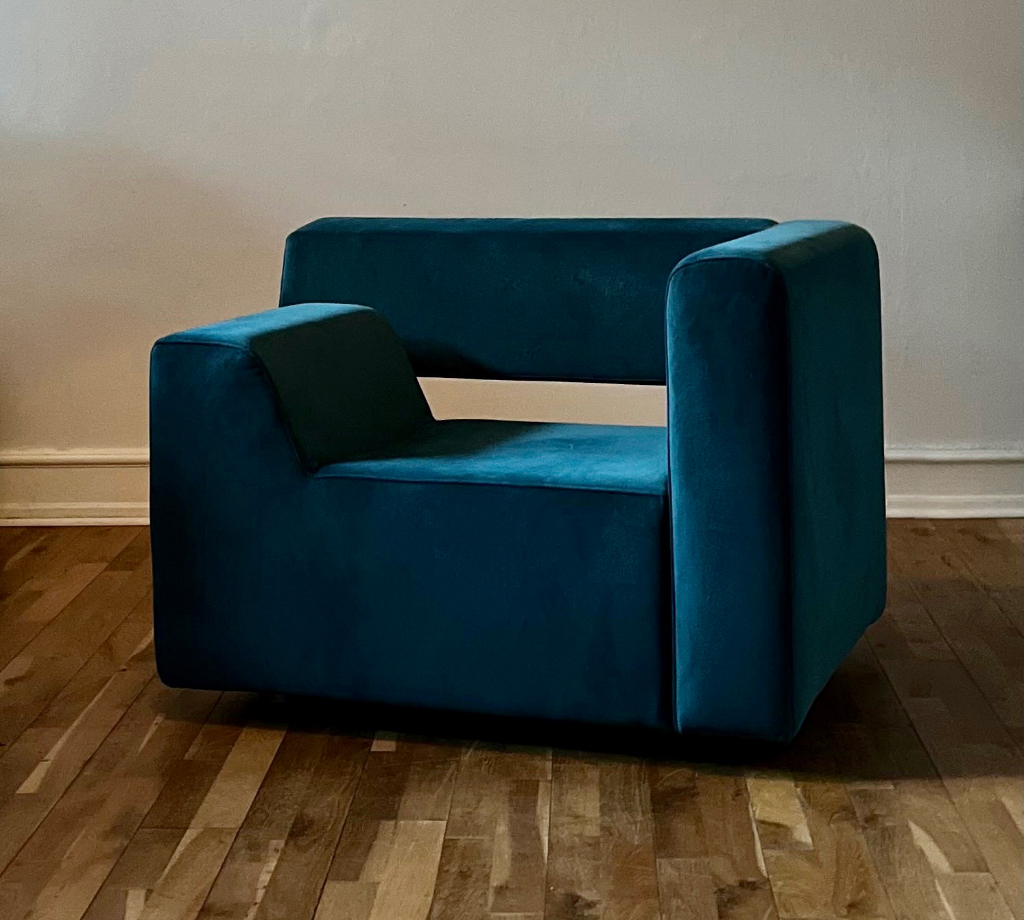 A club chair inspired by the designs of the Dutch architect and furniture designer Gerrit Rietveld. The chair allows several different positions of sitting making it very comfortable,